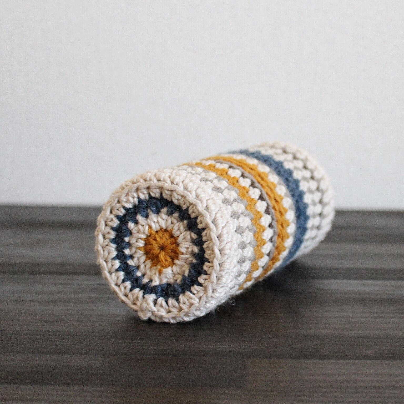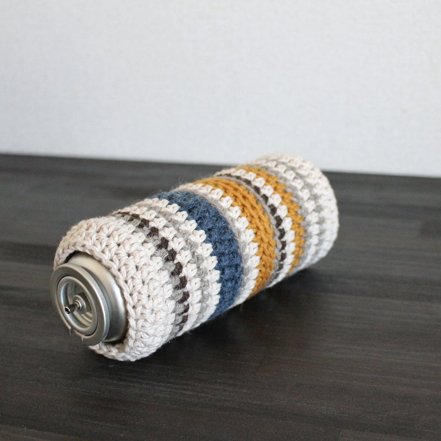 手編みのガス缶カバーでキャンプや山登りの山ごはんに彩りを
