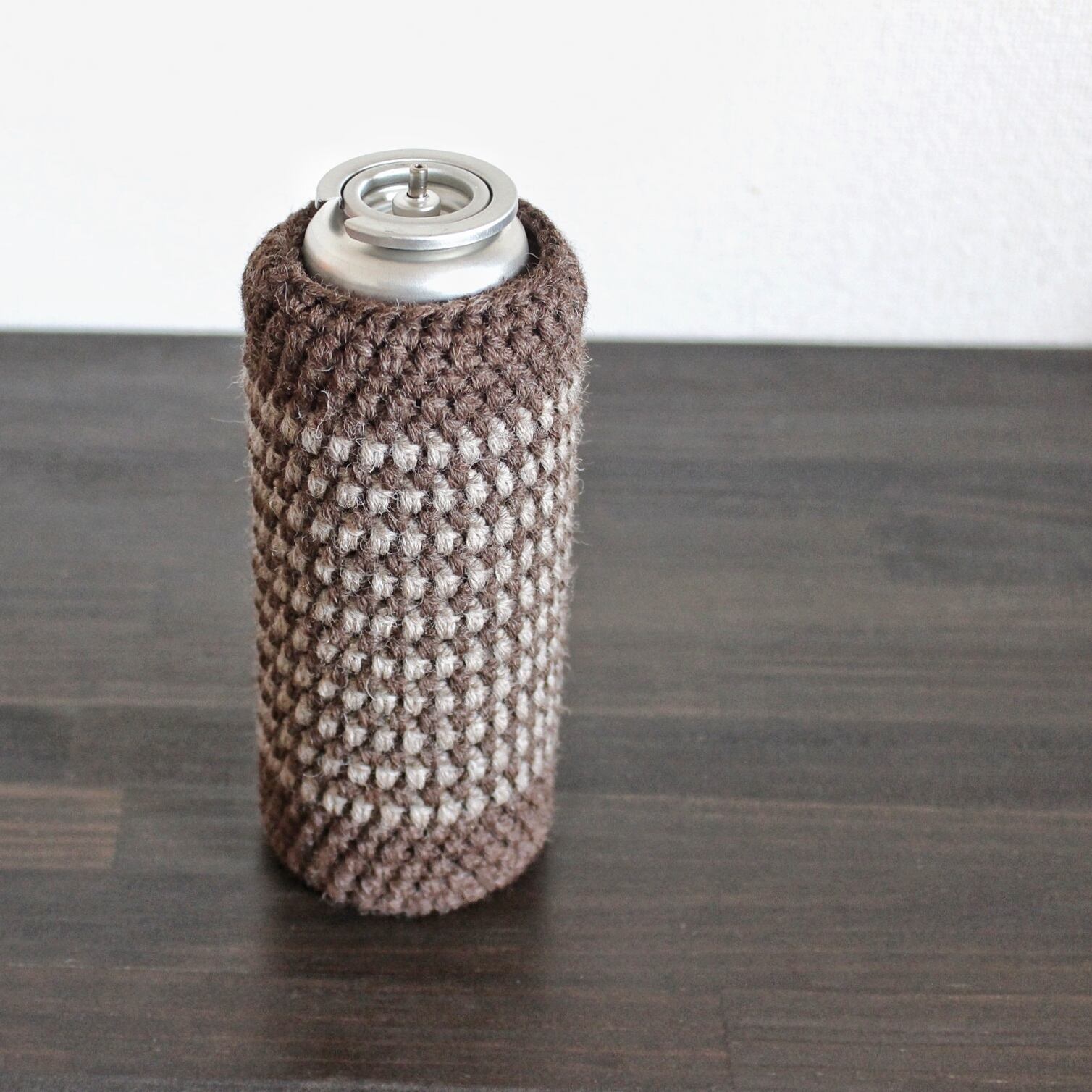 手編みのガス缶カバーでキャンプや山登りの山ごはんに彩りを