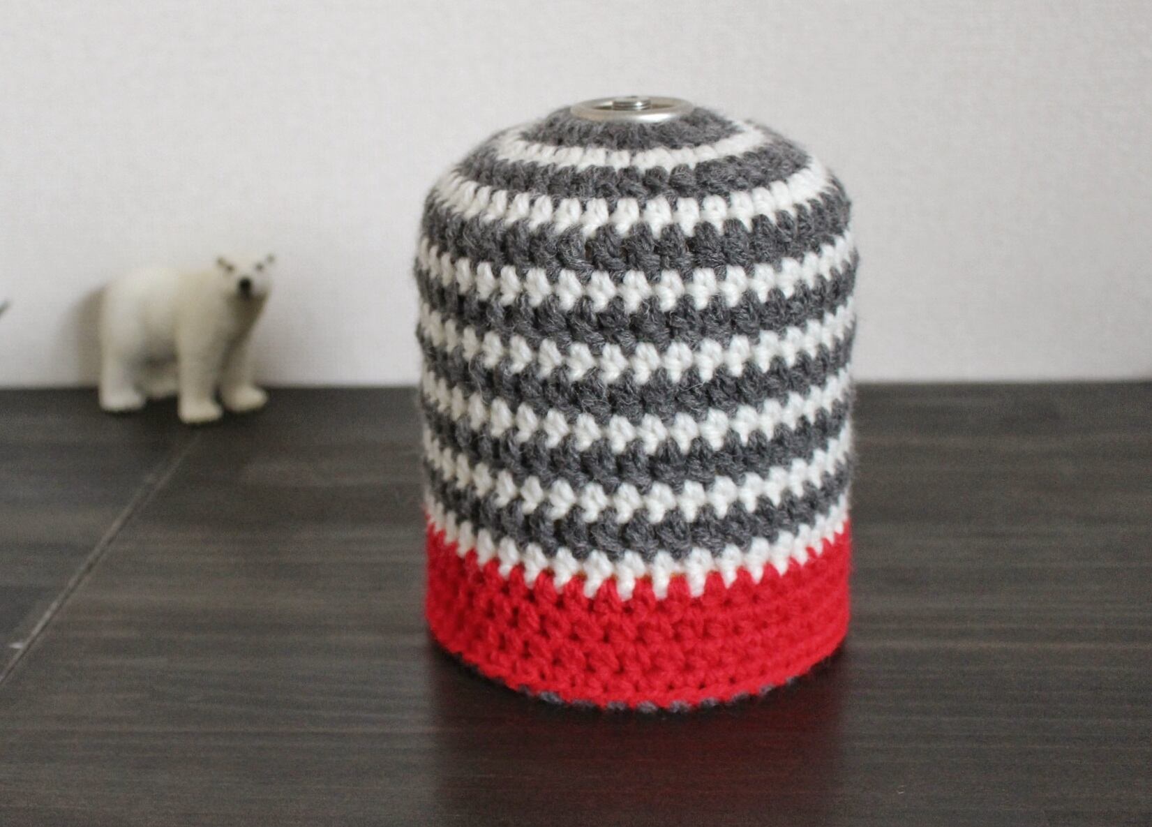 手編みのガス缶カバーでキャンプや山登りの山ごはんに彩りを