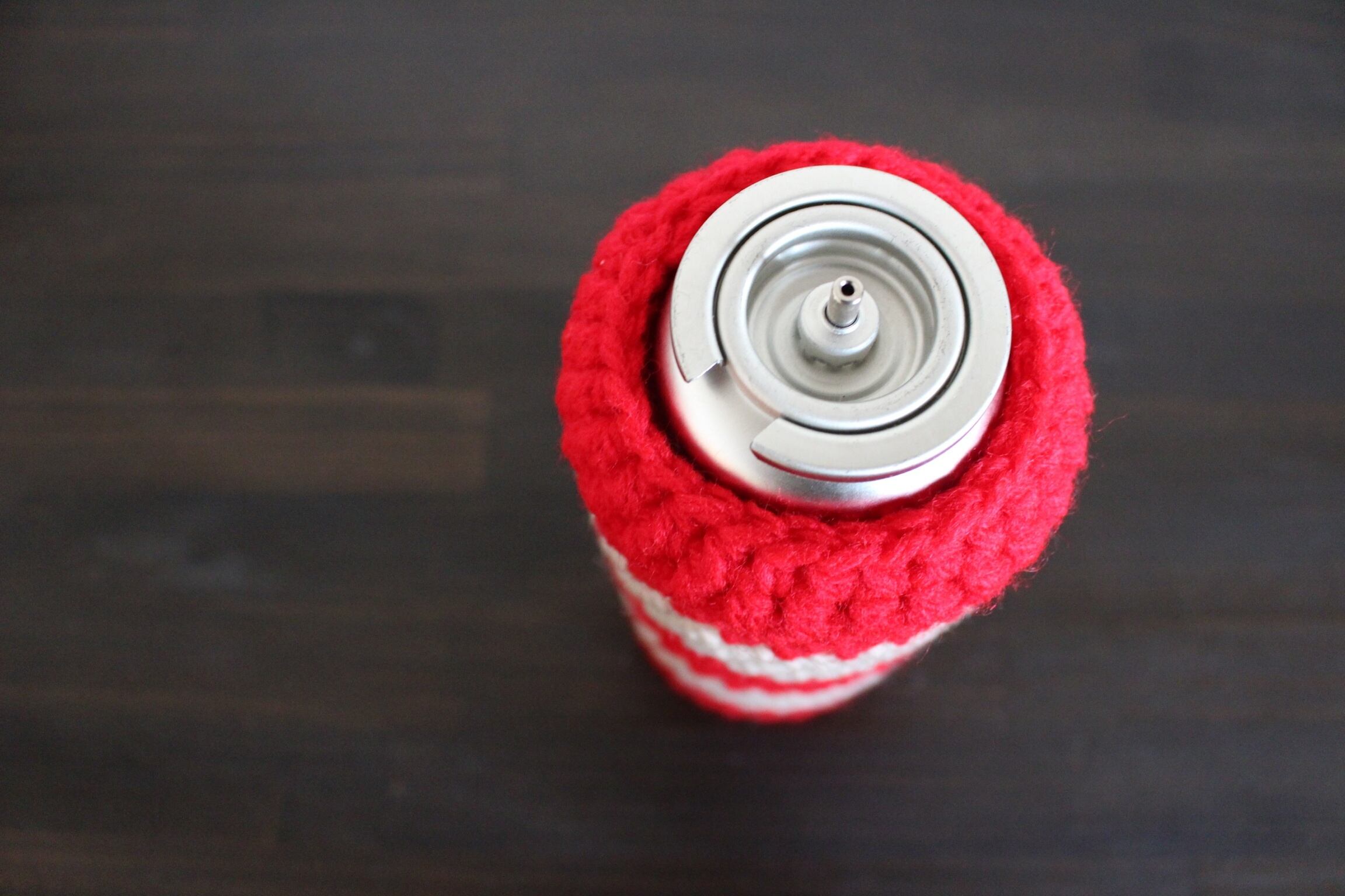 手編みのガス缶カバーでキャンプや山登りの山ごはんに彩りを