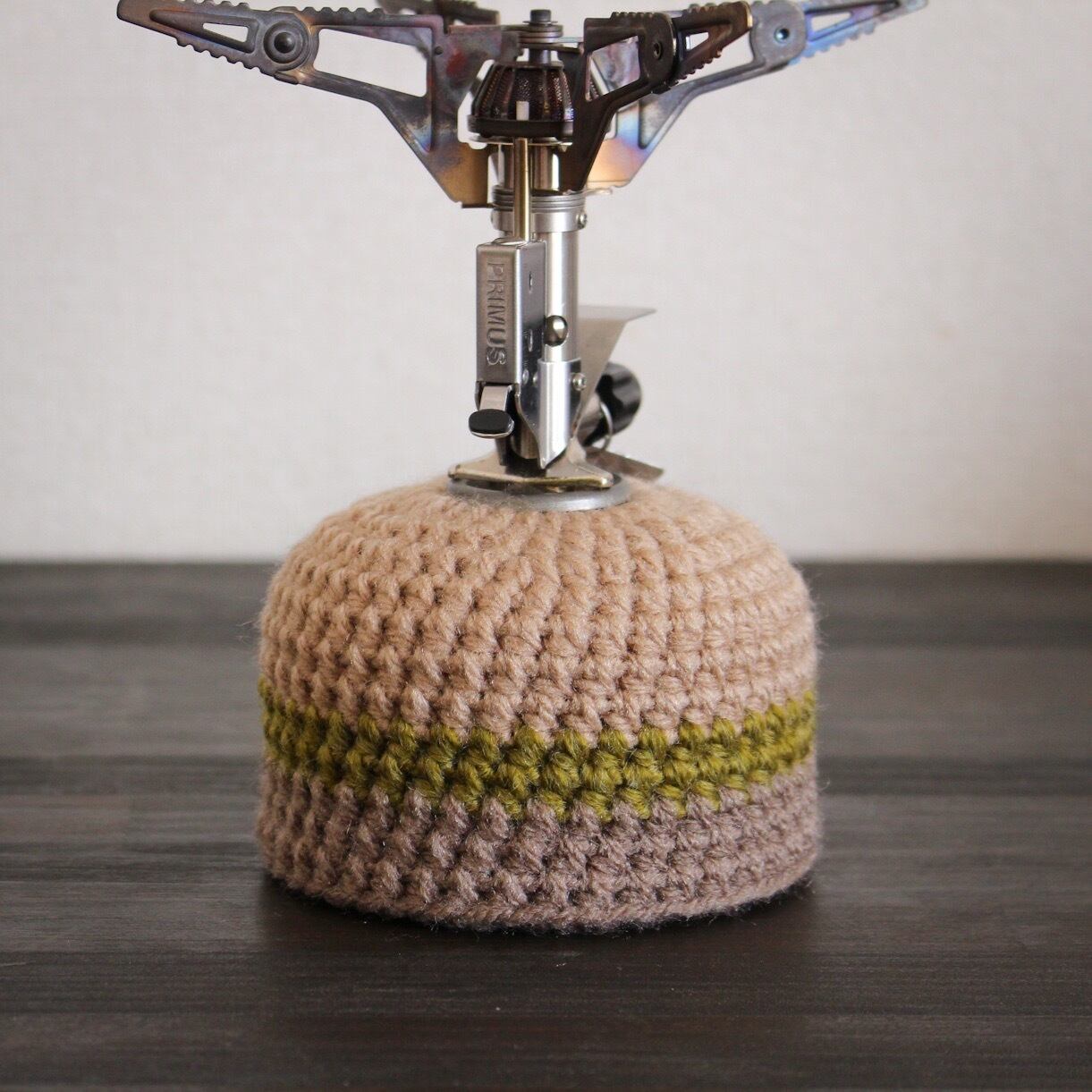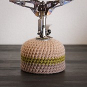 手編みのガス缶カバーでキャンプや山登りの山ごはんに彩りを