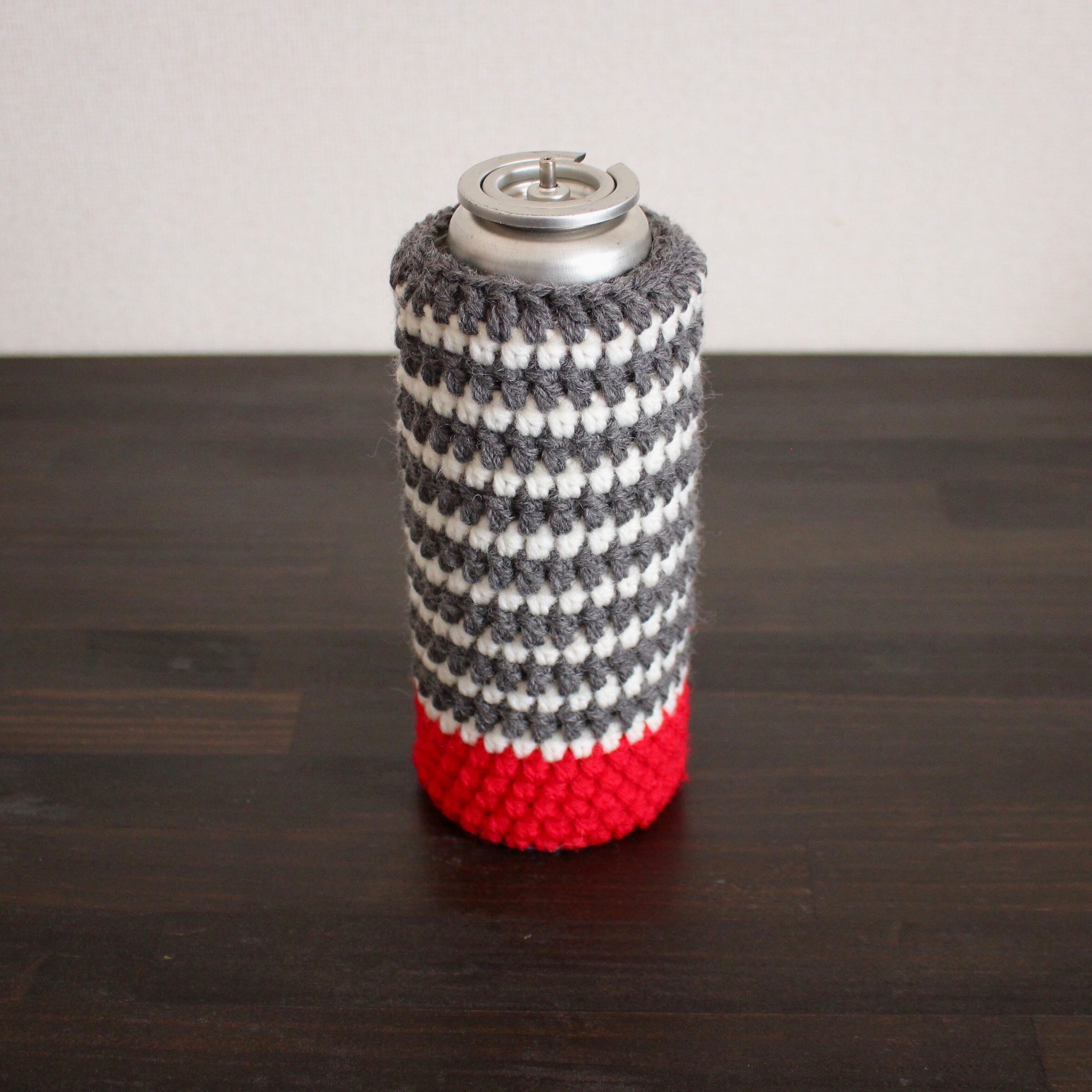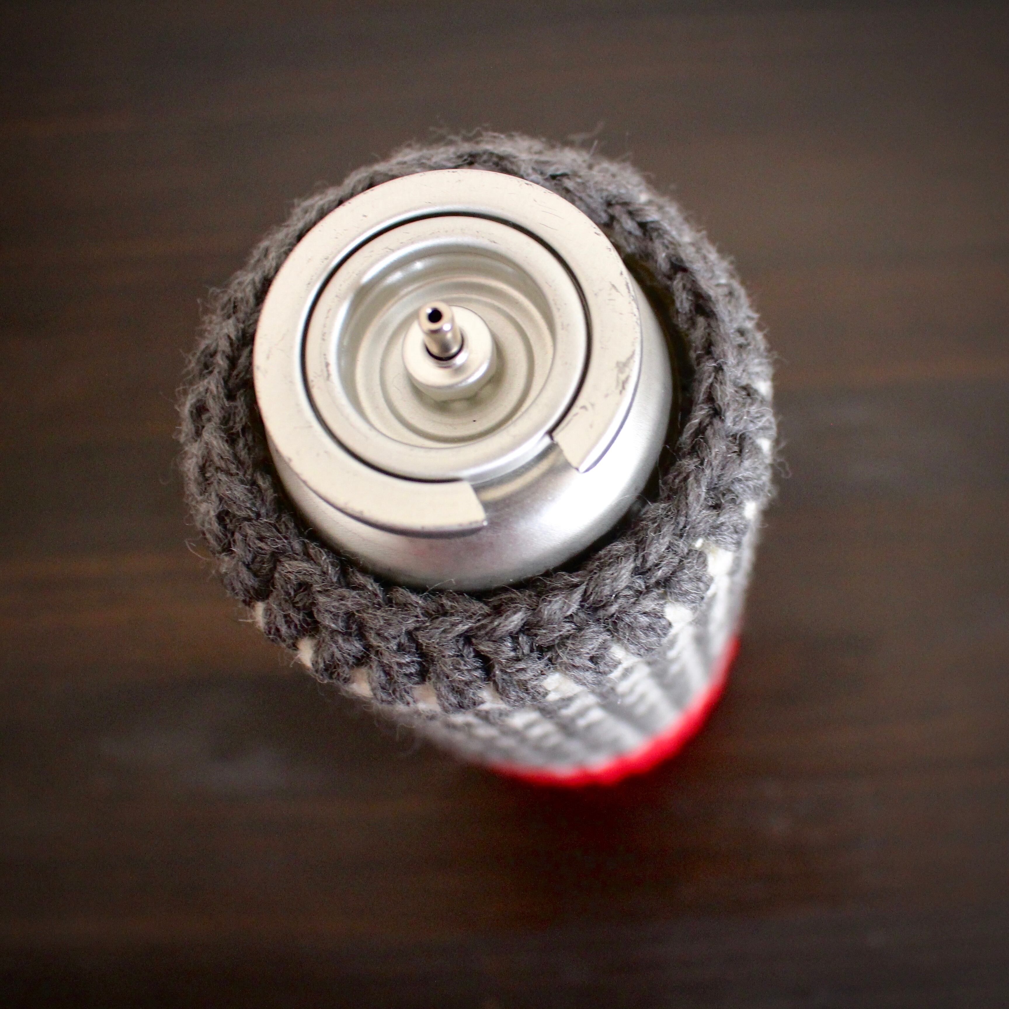 手編みのガス缶カバーでキャンプや山登りの山ごはんに彩りを