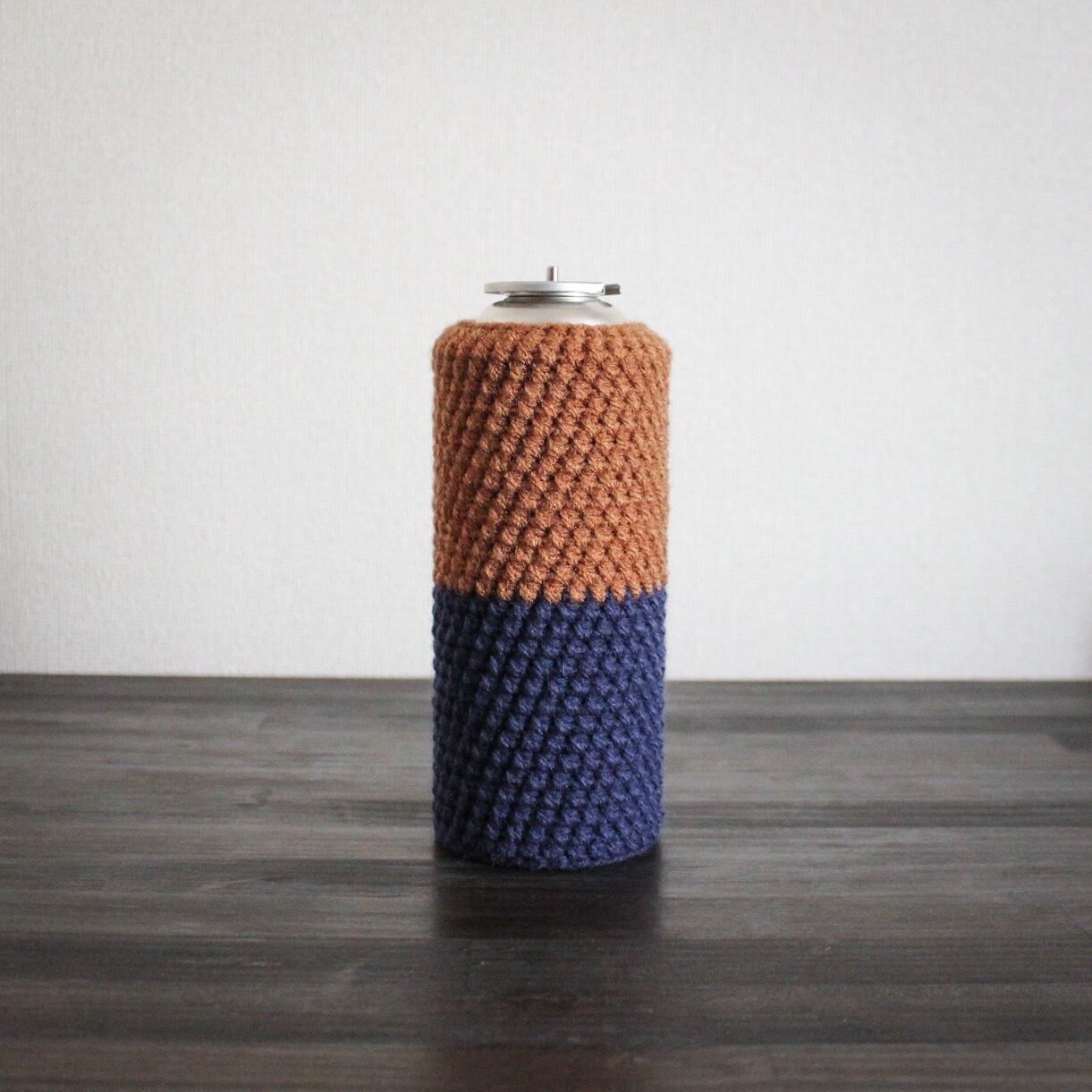 手編みのガス缶カバーでキャンプや山登りの山ごはんに彩りを