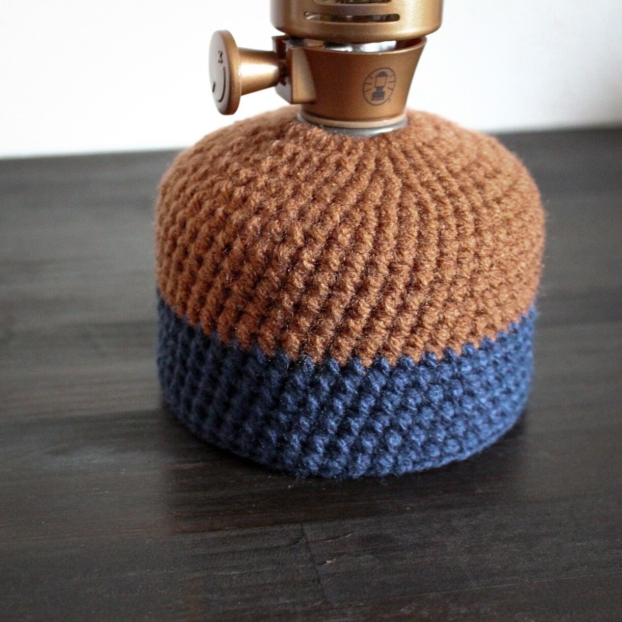手編みのガス缶カバーでキャンプや山登りの山ごはんに彩りを