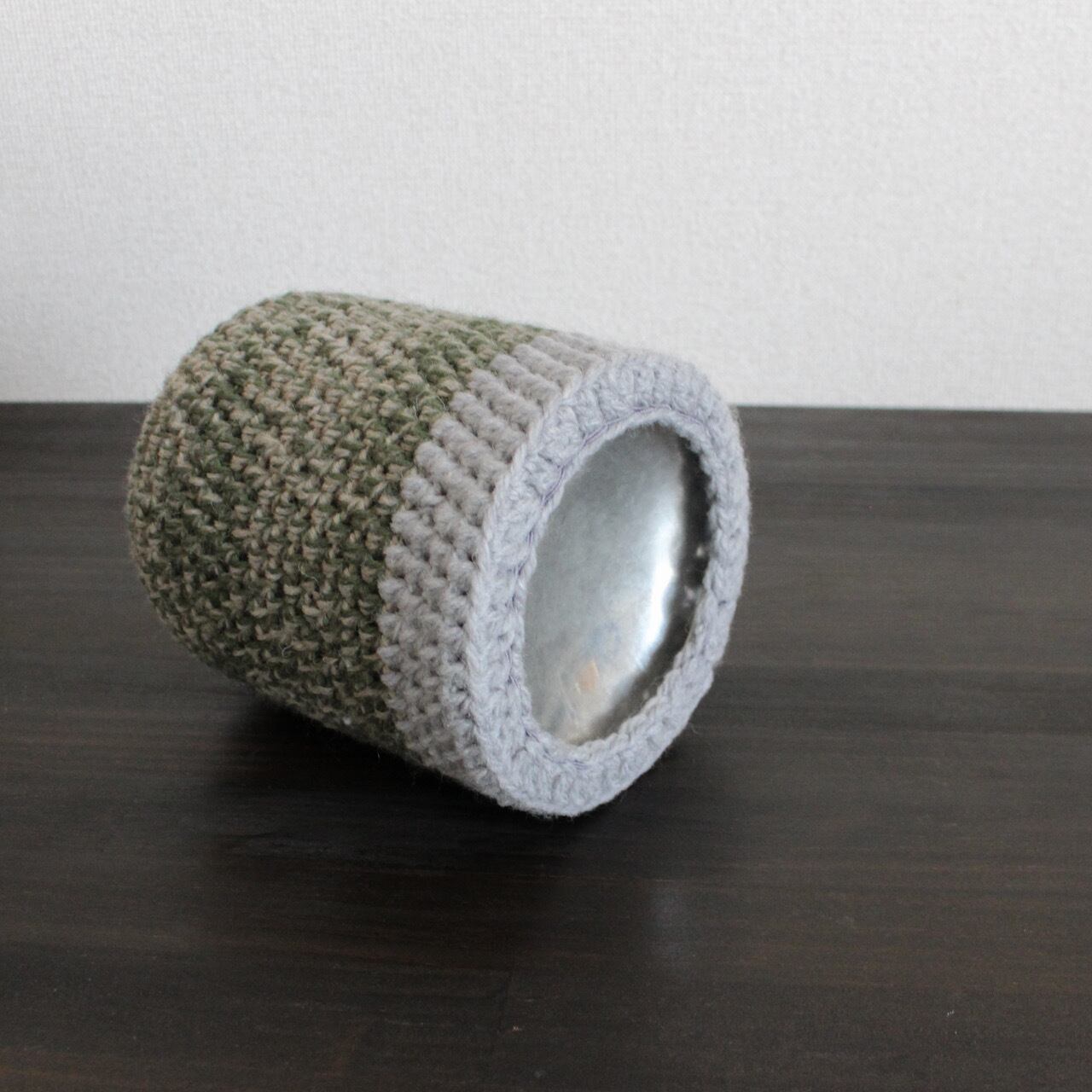 手編みのガス缶カバーでキャンプや山登りの山ごはんに彩りを