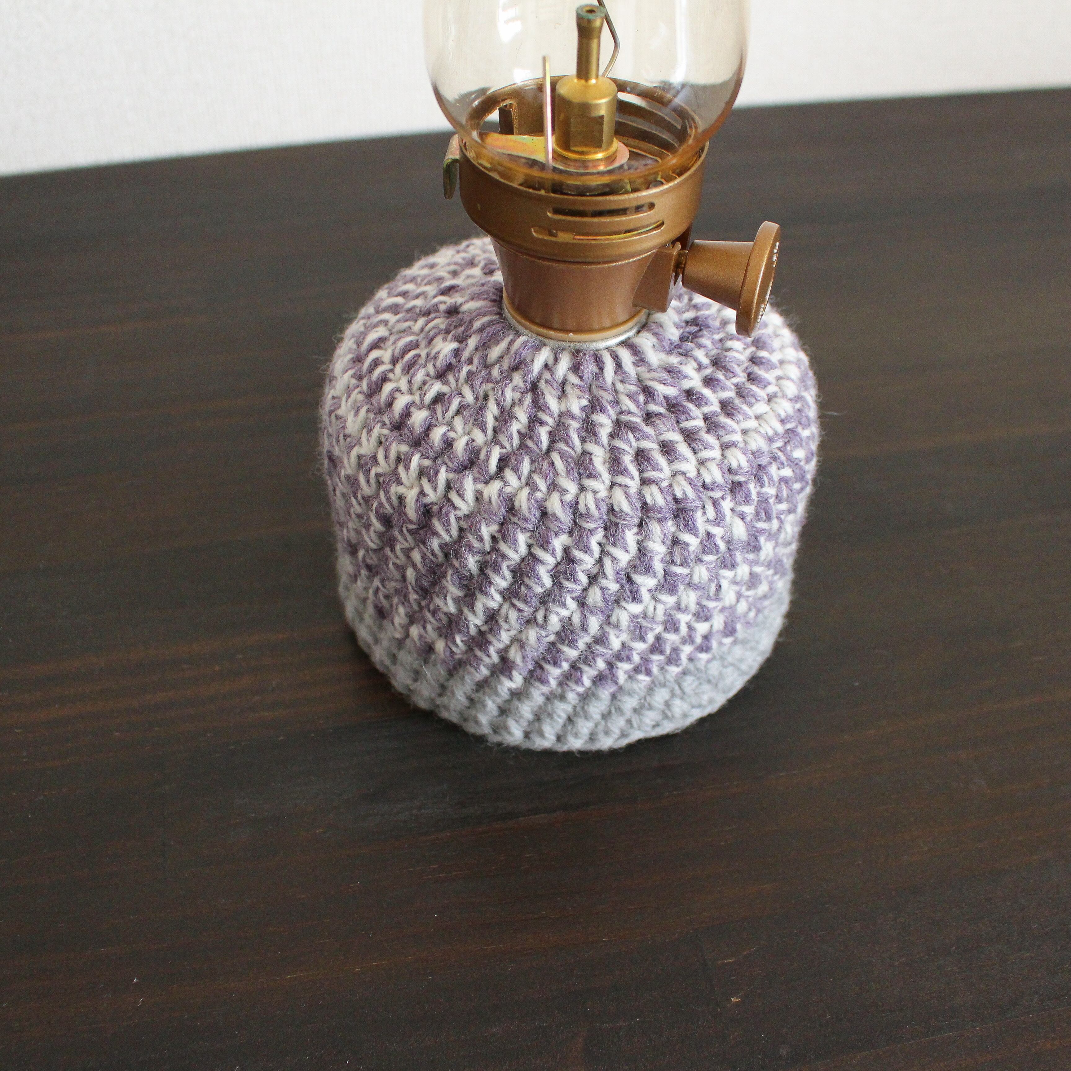 手編みのガス缶カバーでキャンプや山登りの山ごはんに彩りを