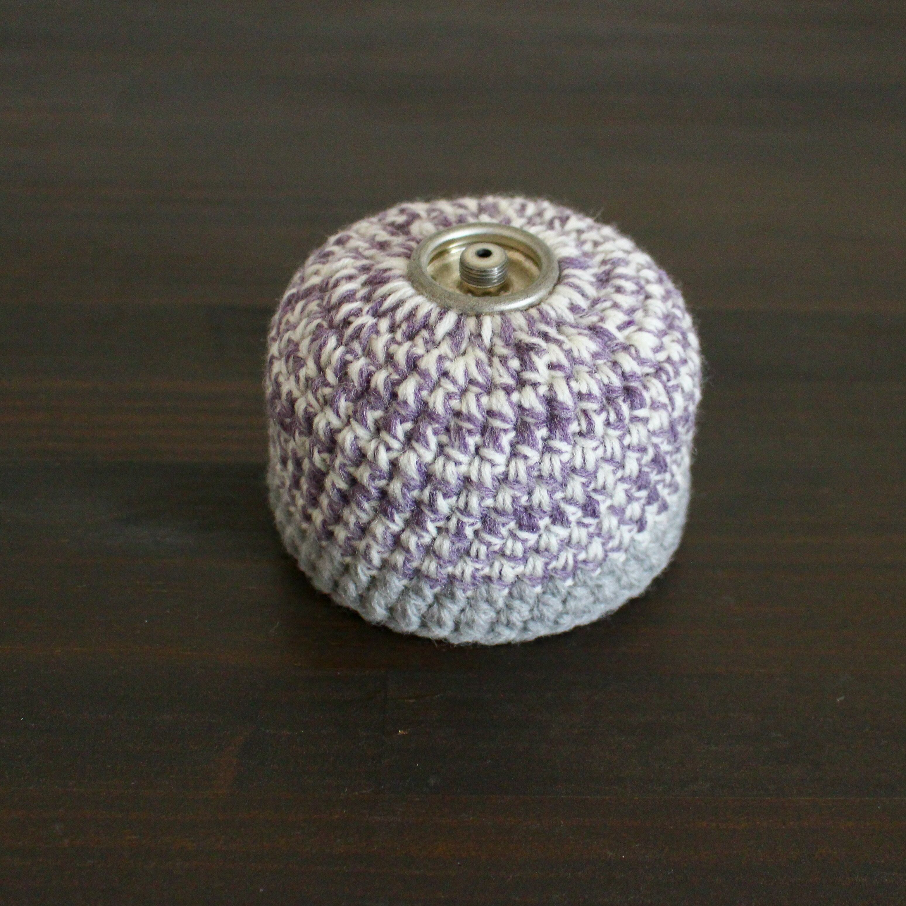 手編みのガス缶カバーでキャンプや山登りの山ごはんに彩りを