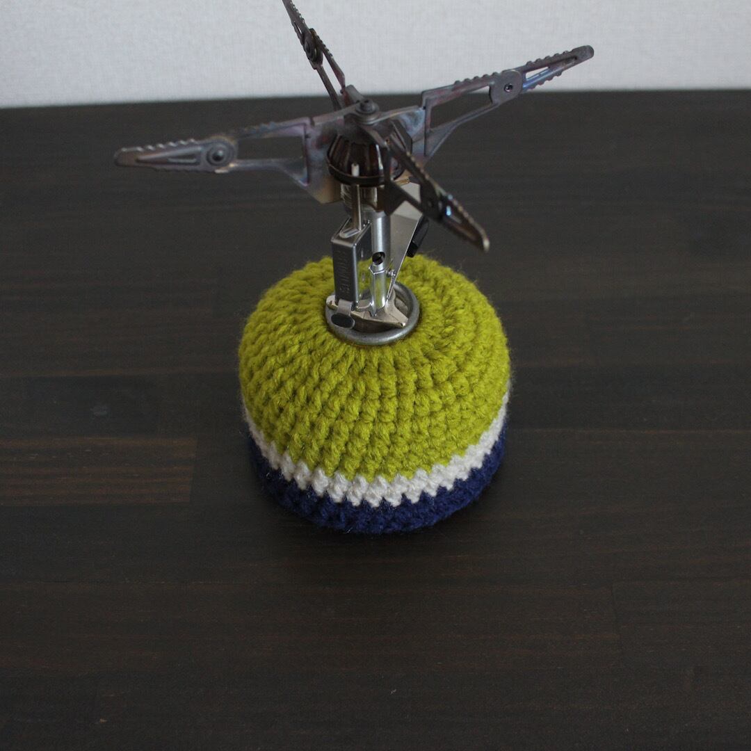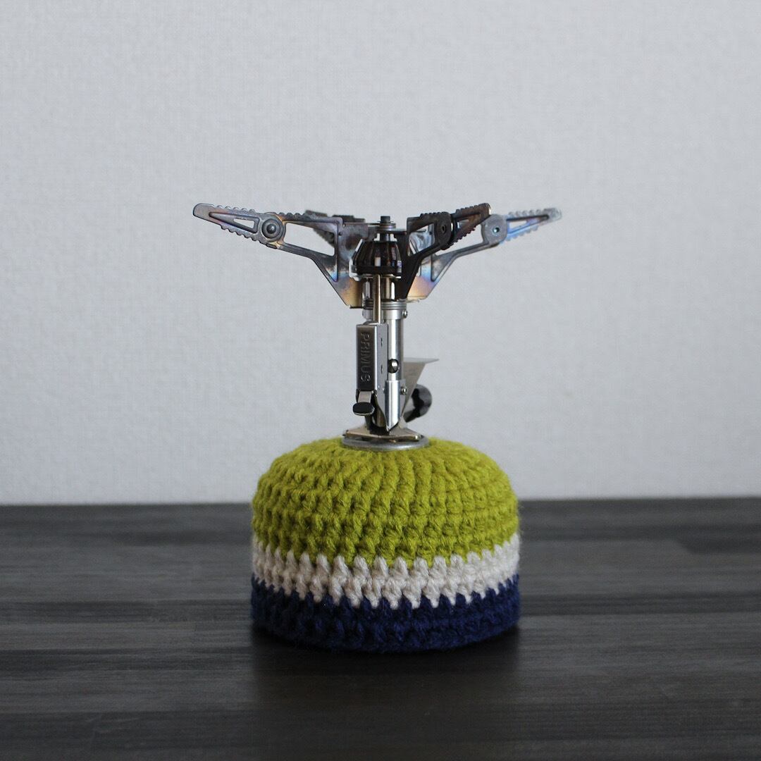 手編みのガス缶カバーでキャンプや山登りの山ごはんに彩りを